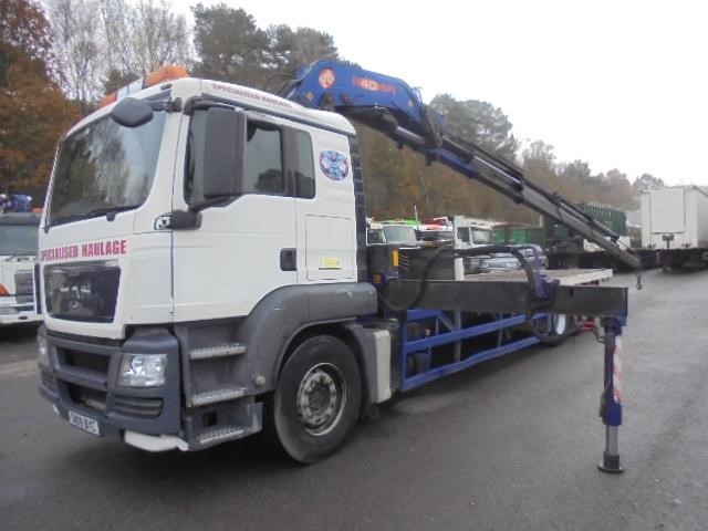 2009 MAN TGS26.400 Sleeper Cab 6x2, PM 40ton Remote Controlled Crane, 5 Extensions, 24ft Extendable Body, Twist Lock, 9ton Front Axle, Pipped for Drawbar, Manual, Any Inspection Welcome. £27,500 plus vat 6x2
