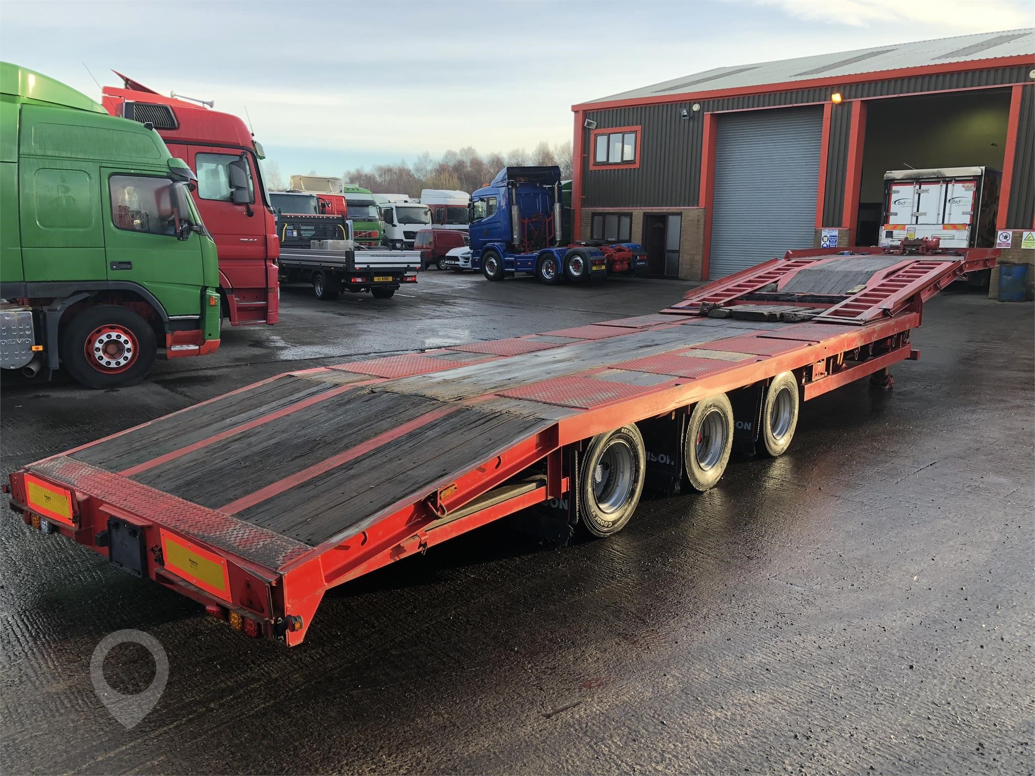 2006 Dennison Extendable Low Loader Tractor Carrier, 1 Owner Trailer In Red, ROR Axles with Drum Brakes, Tested March 2019, Manual Pull Out Ramps, Remote Winch, Very Straight & Well Maintained Trailer, Any Inspection Welcomed, Trailer has been used for our own internal movements and has been replaced with a New Trailer, £18,000+VAT, Call! Model: EXTENDABLE TRACTOR CARRIER